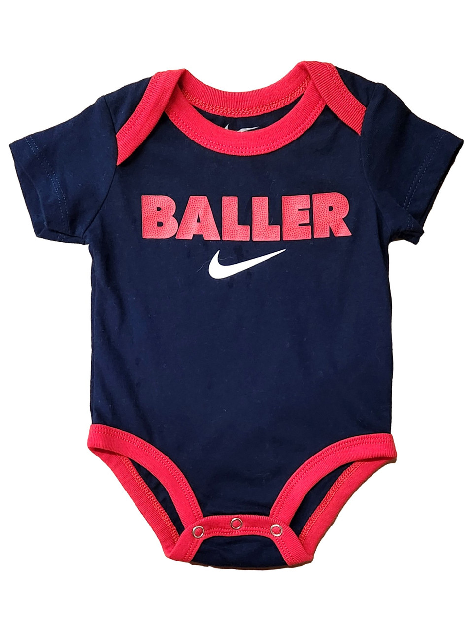 This cute baby boy's navy blue "Baller" Nike bodysuit is sure to be a favorite!