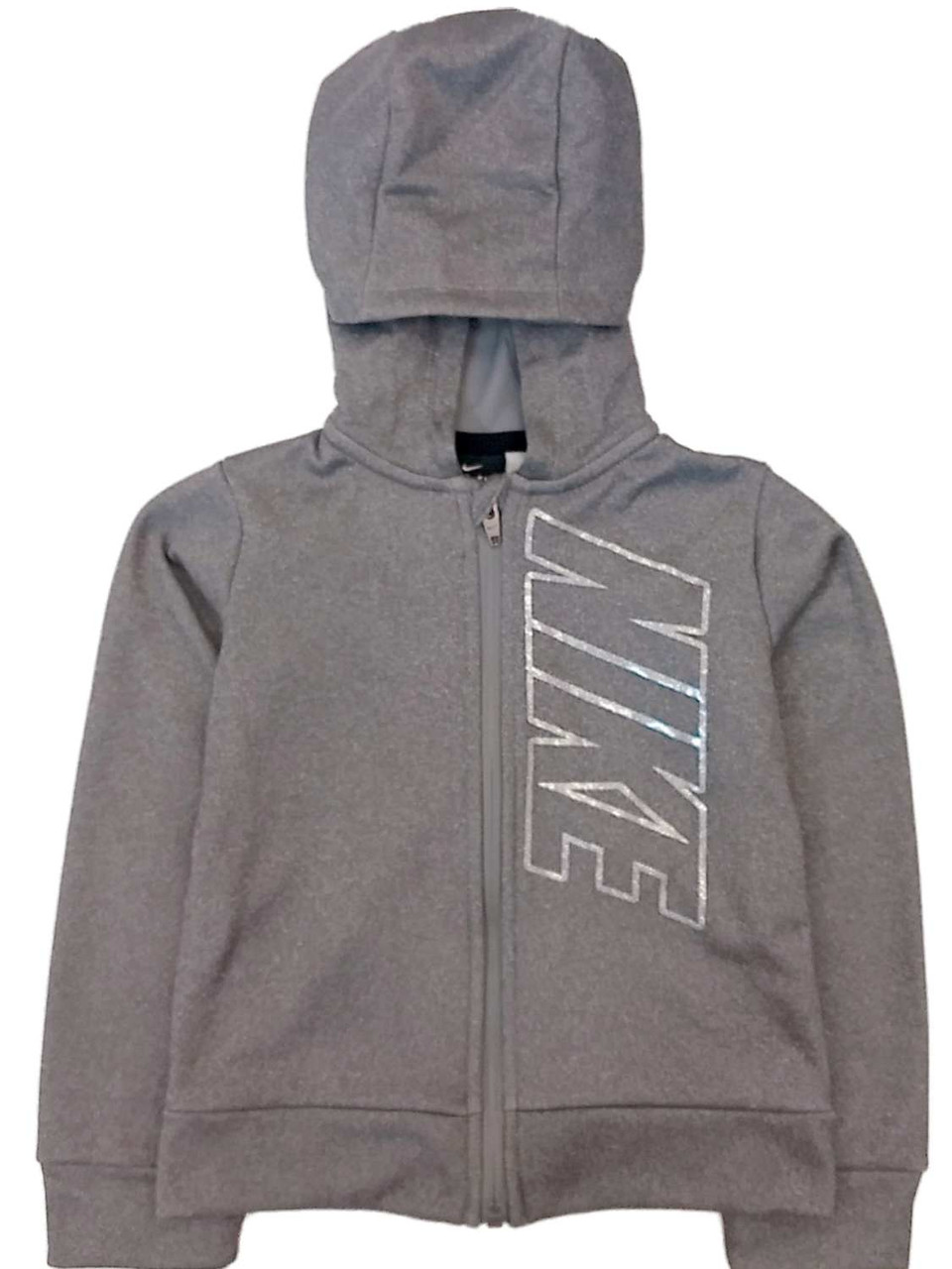 - Nike Therma Girls Gray & Silver Zip Front Hoodie Sweatshirt Jacket Dri-fit