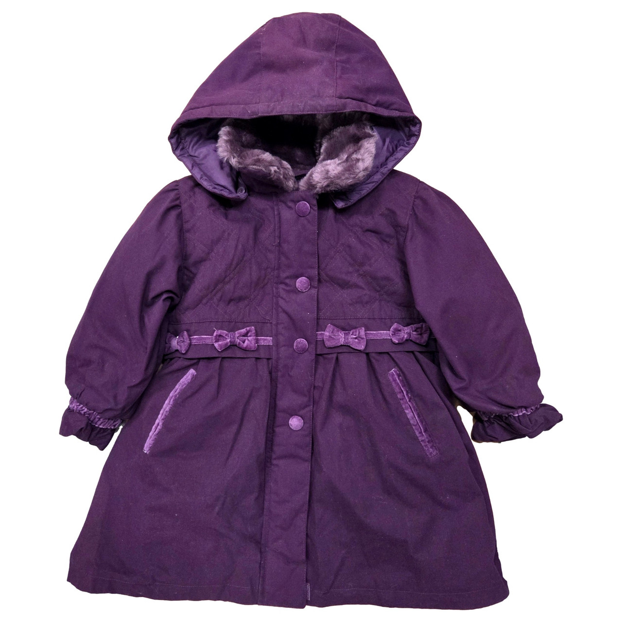 - Outbrook Girls Purple Padded Dress Coat With Bows & Detachable Hood