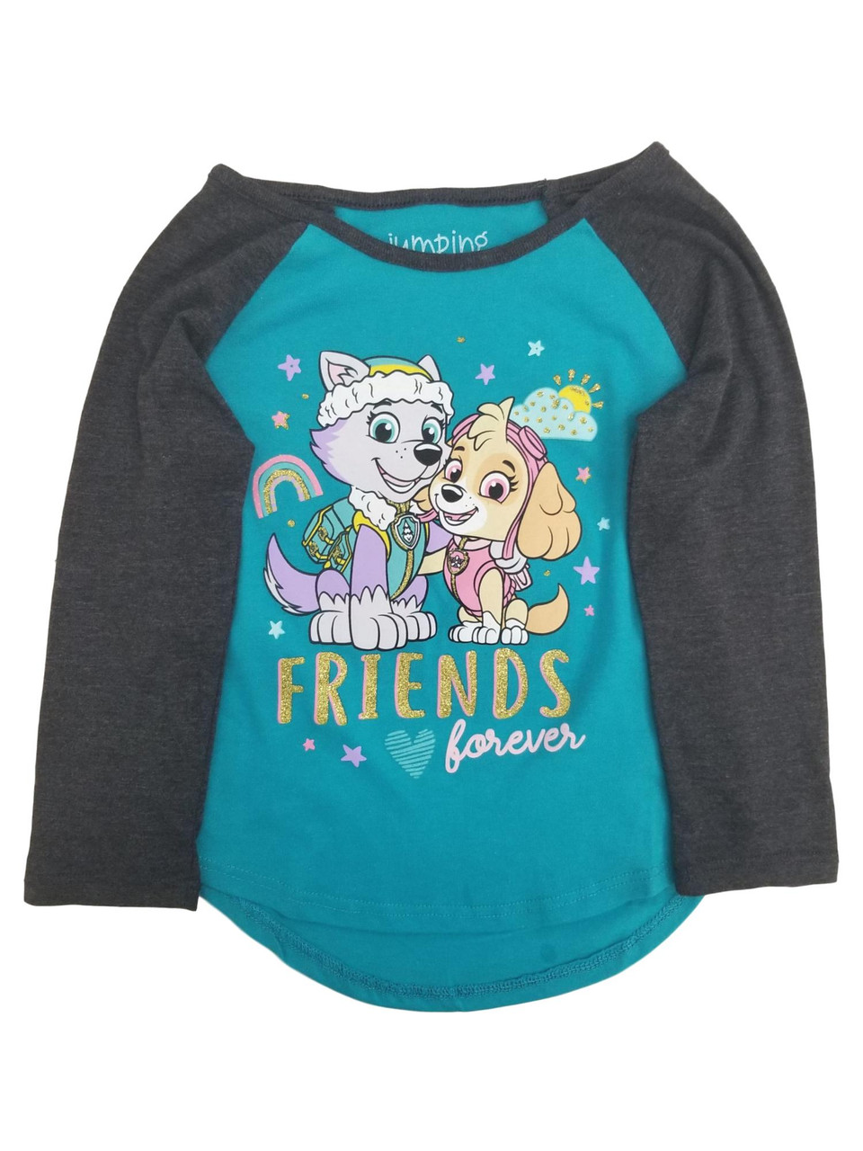 Your little Paw Patrol fan will love wearing this long sleeved blue & gray glitter "Friends forever" Skye t-shirt!