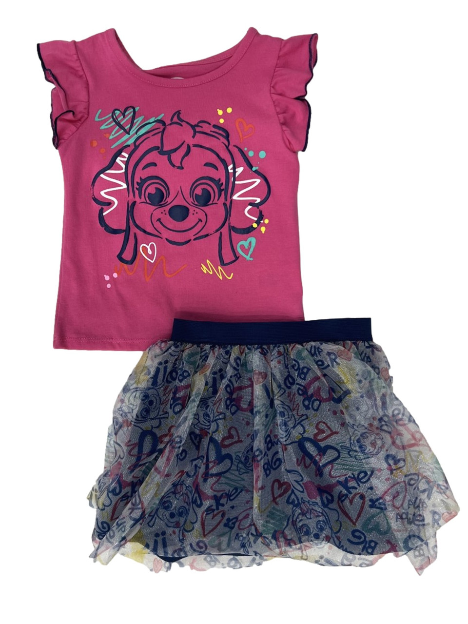 This adorable toddler girls Paw Patrol pink Skye short sleeve shirt & tutu skirt is sure to be a favorite!