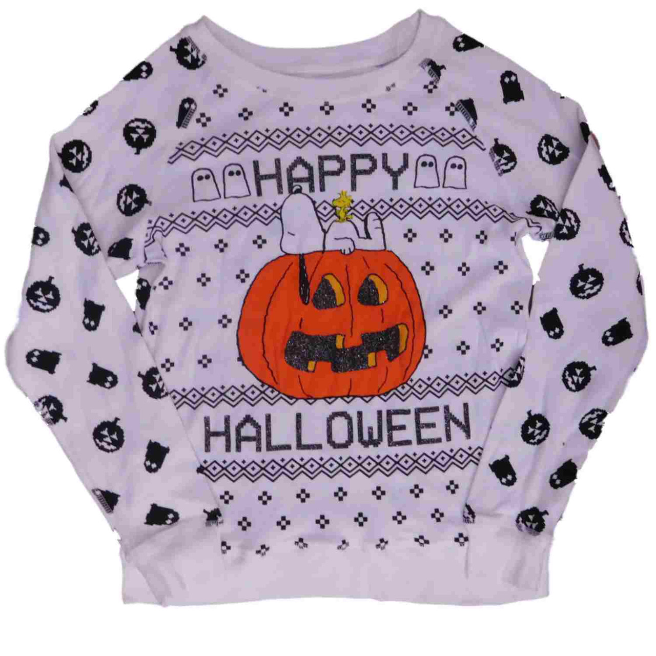 - Peanuts Junior Womens White Happy Halloween Snoopy Sweatshirt Pumpkin Top Small
