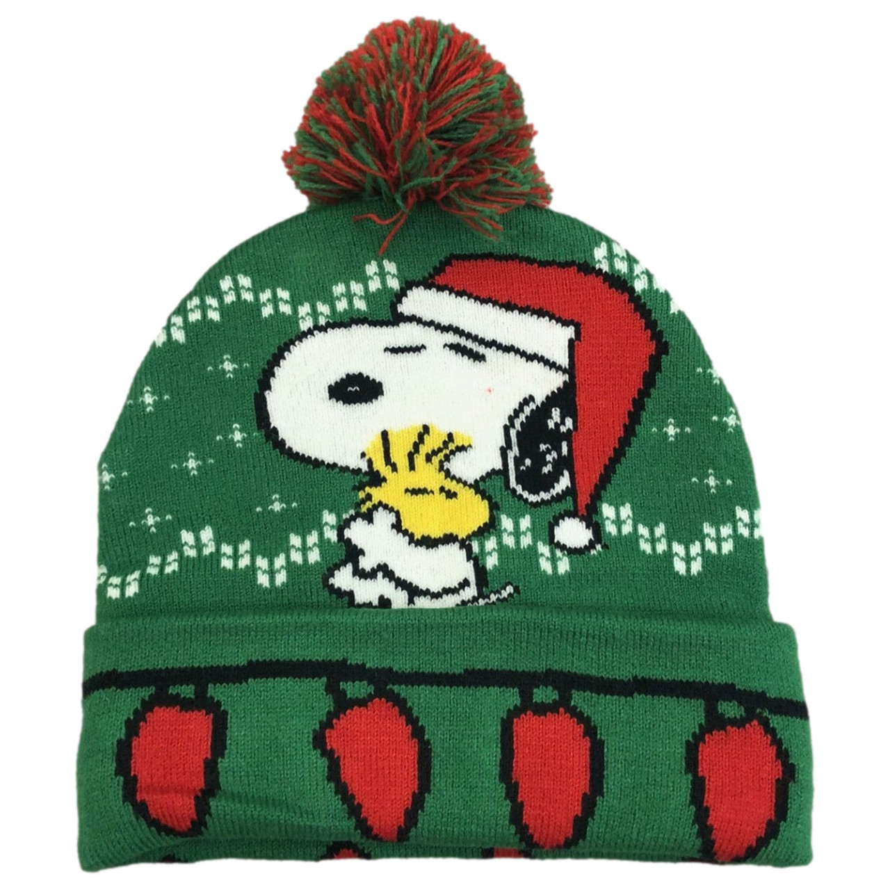 - Peanuts Womens Green Snoopy Christmas Beanie Stocking Cap Hat
