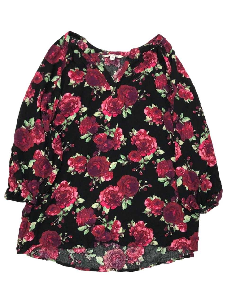 - Pioneer Woman Womens Black & Pink Floral Rose Print Peasant Blouse Shirt