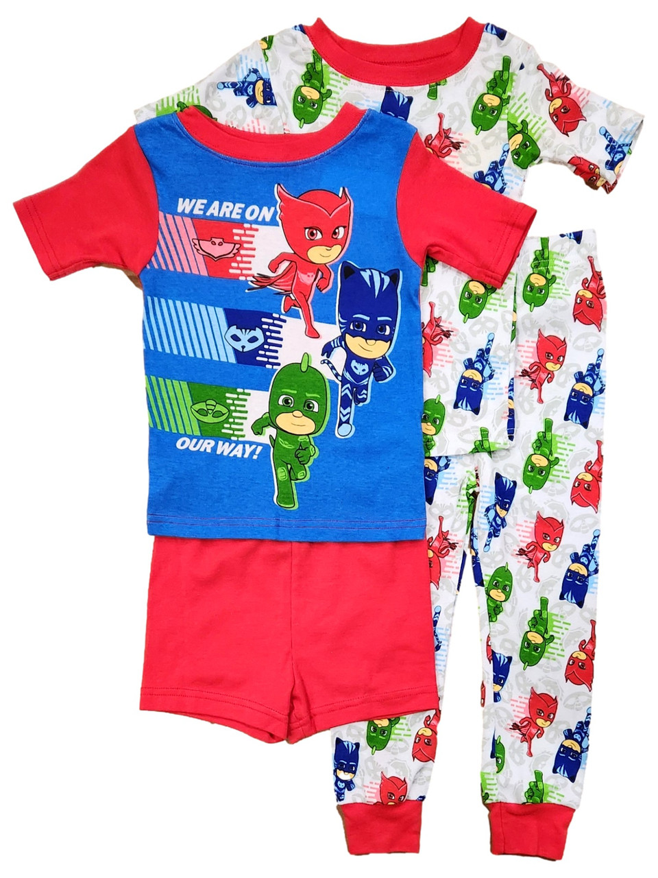 - PJ Masks Toddler Boys Red, White & Blue 4 Piece Cotton Pajamas Sleep Set 3T