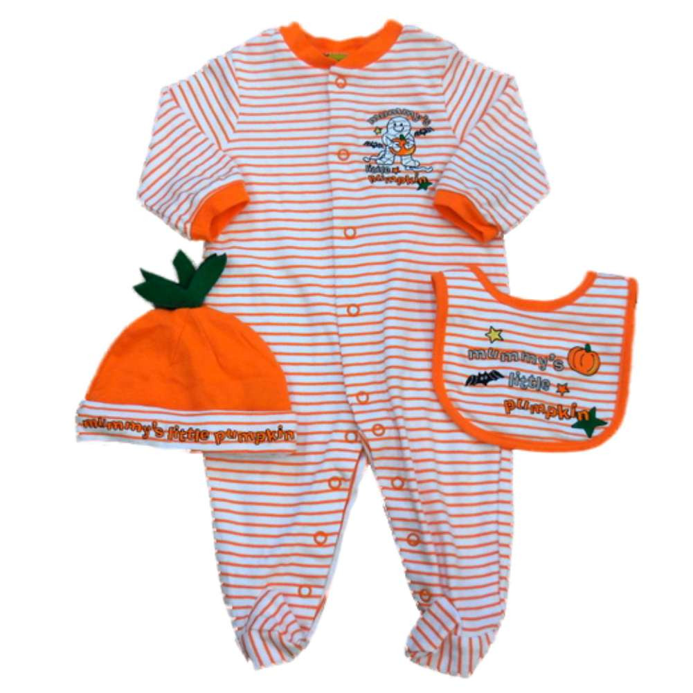 - Prepare To Scare Infant Boys Orange Mummy's Little Pumpkin Coverall Bib & Hat