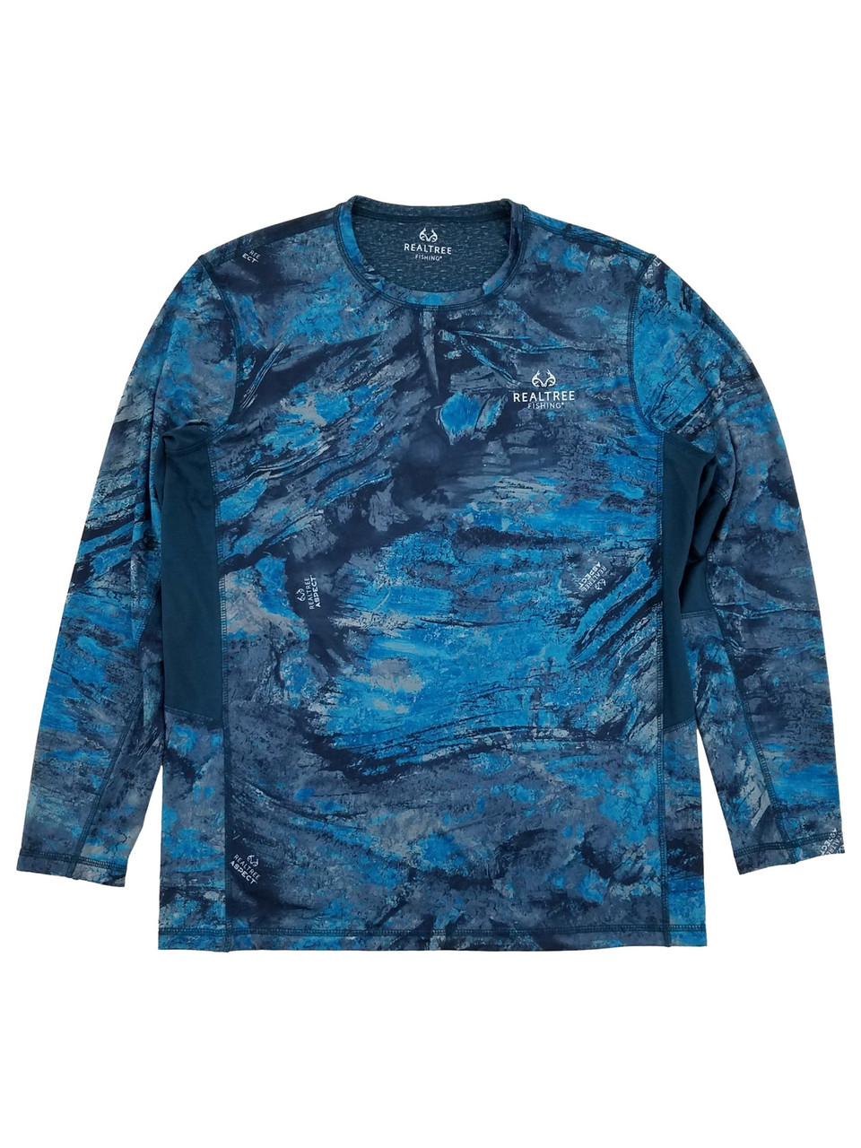 - Realtree Aspect Mens Blue Reversible Long Sleeve Performance Fishing Shirt