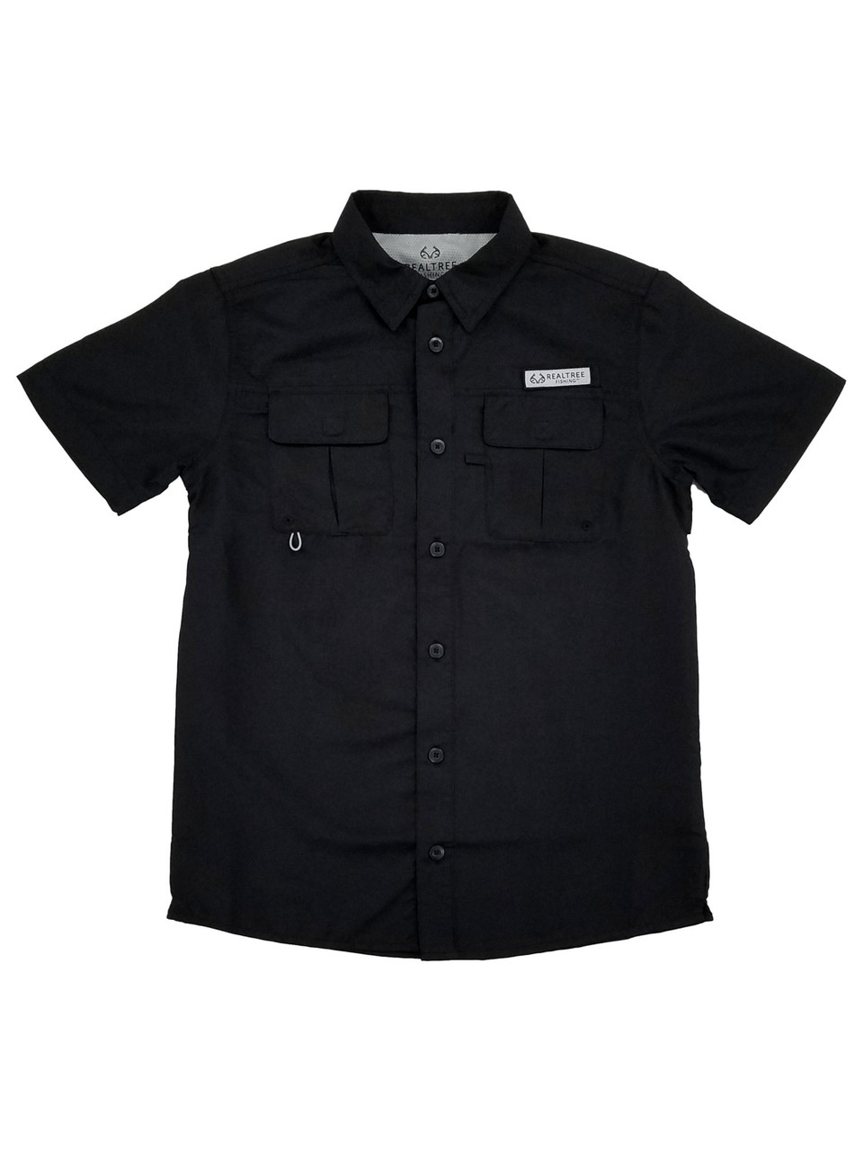 - Realtree Boys Black Vented Cape Back Short Sleeve Fishing Guide Shirt