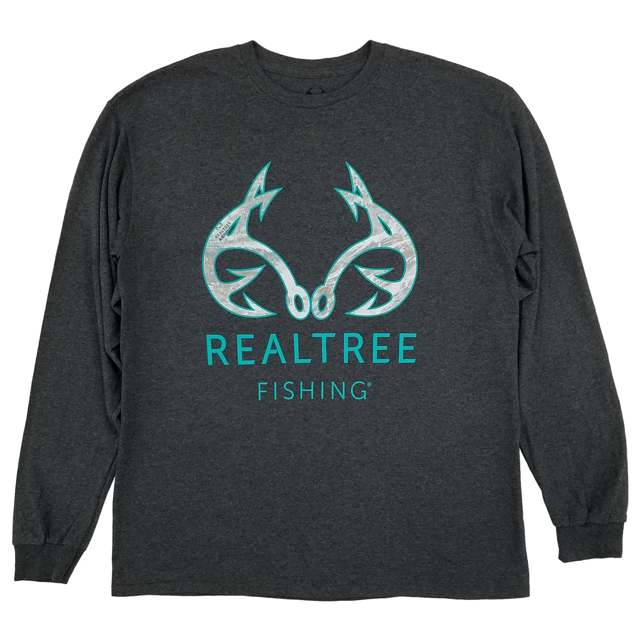 - Realtree Fishing Mens Dark Gray Heather Long Sleeve Crew Graphic Tee T-Shirt