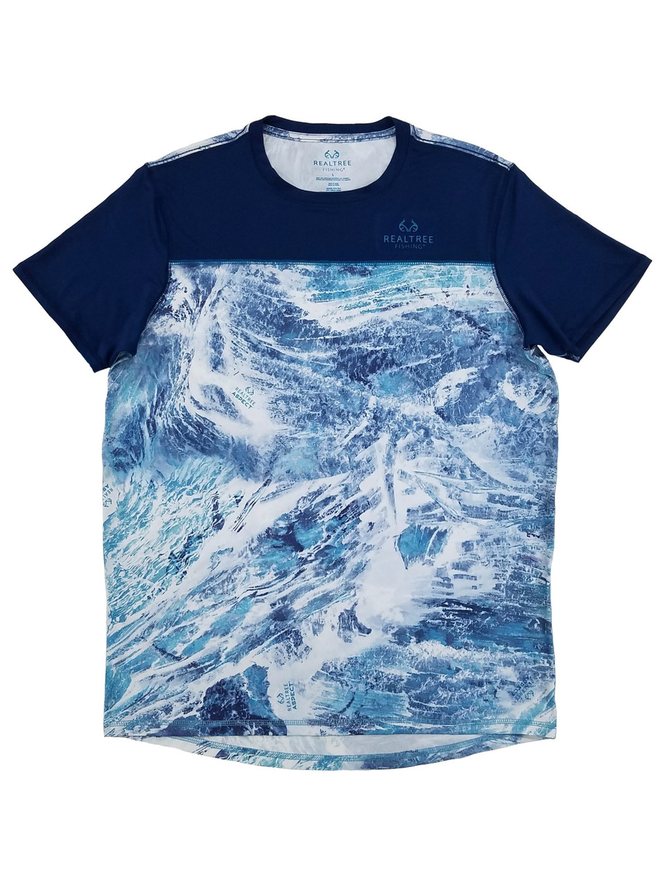- Realtree Mens Blue Wave Crest Short Sleeve Performance Fishing Shirt