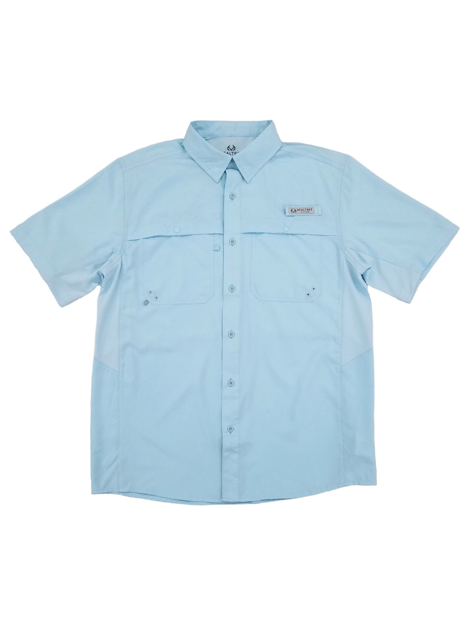 - Realtree Mens Light Blue Short Sleeve Fishing Guide Shirt