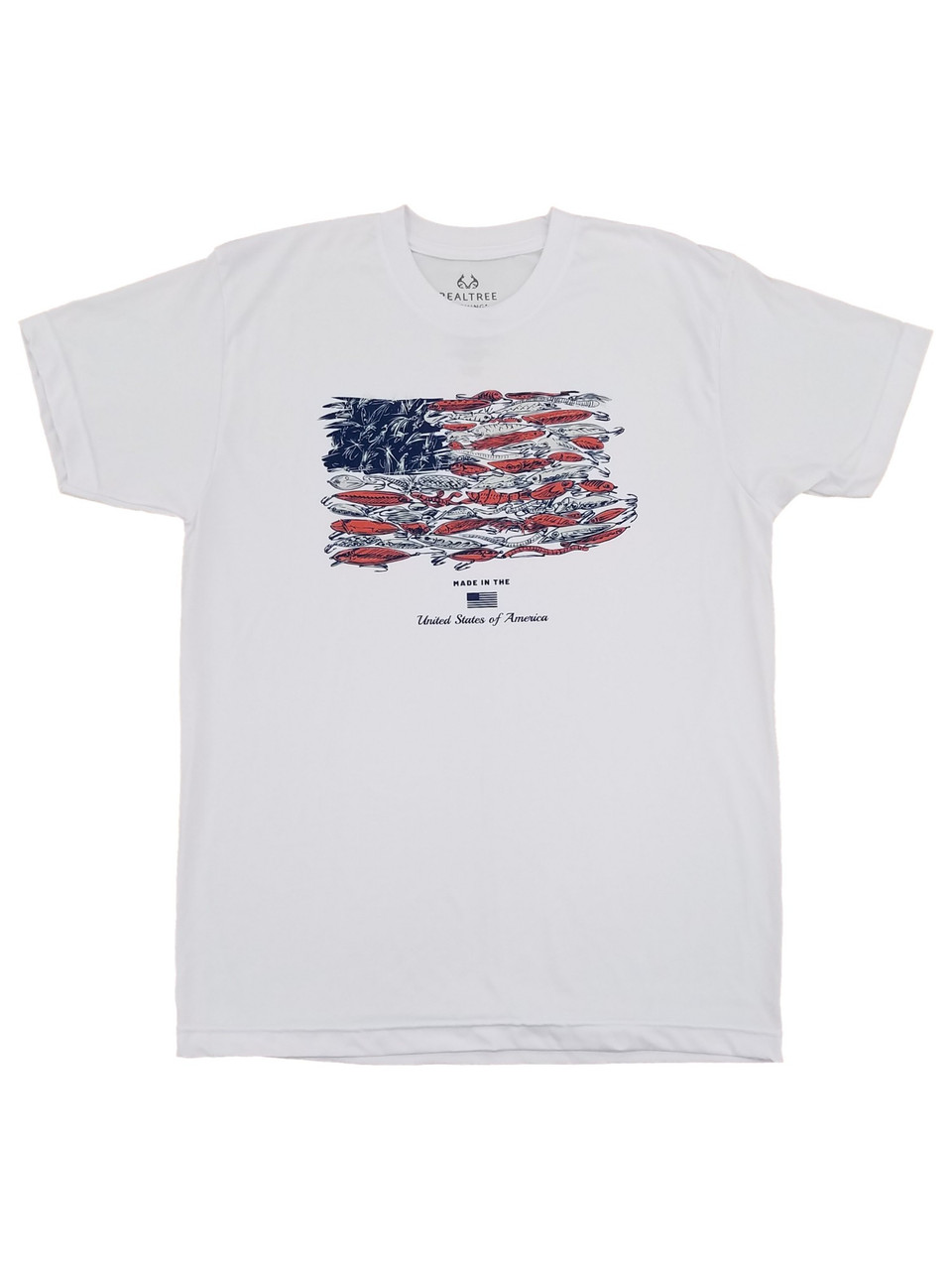 - Realtree Mens White Fishing Lure US Flag Short Sleeve Performance T-Shirt