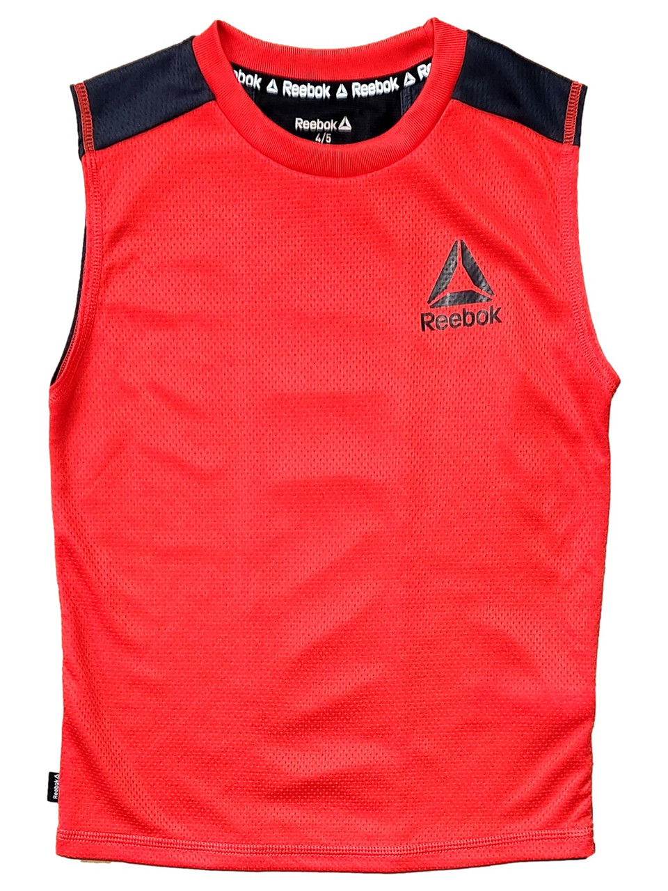 - Reebok Boys Red & Black Mesh Breathable Reebok Tank Top Sleeveless Shirt
