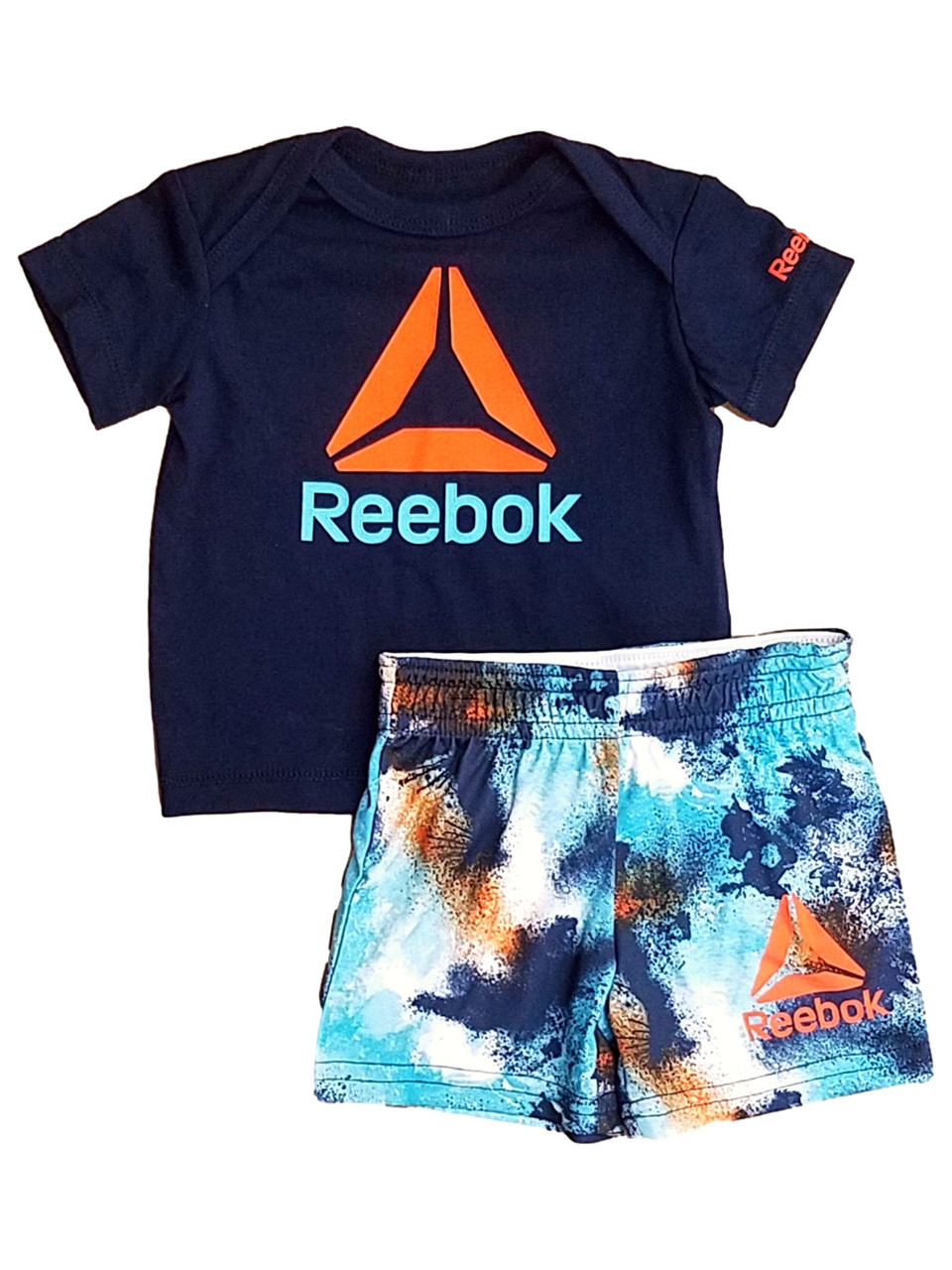 - Reebok Infant Navy Blue, Orange & White Boys Shirt & Shorts Outfit Set