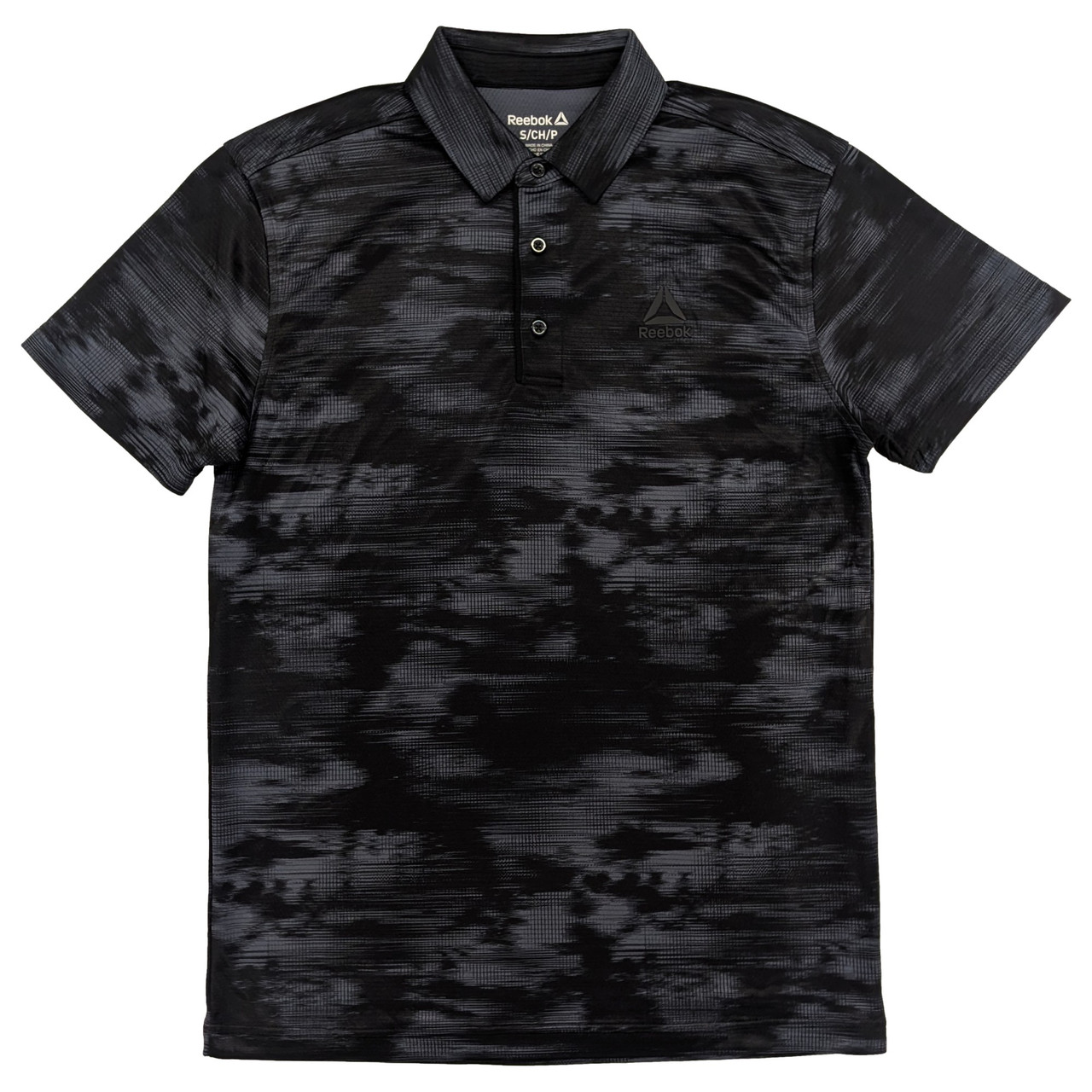 - Reebok Mens Black Print Short Sleeve Performance Polo Shirt Small