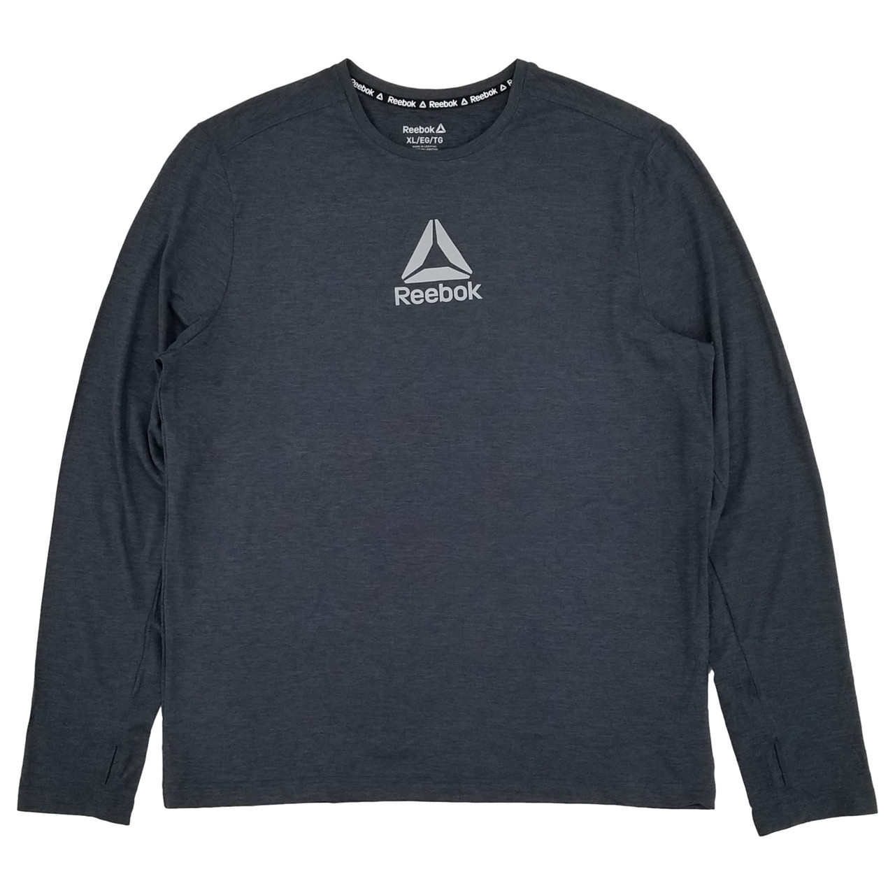 - Reebok Mens Ebony Heather Gray Long Sleeve Performance Crew Active Shirt