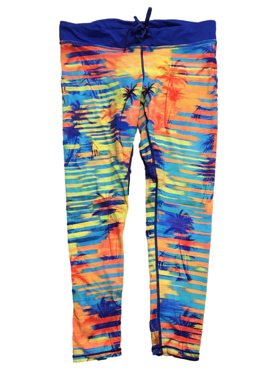 You will love wearing these super cute orange & blue striped palm tree print Reebok swimming leggings to the beach or the pool!
