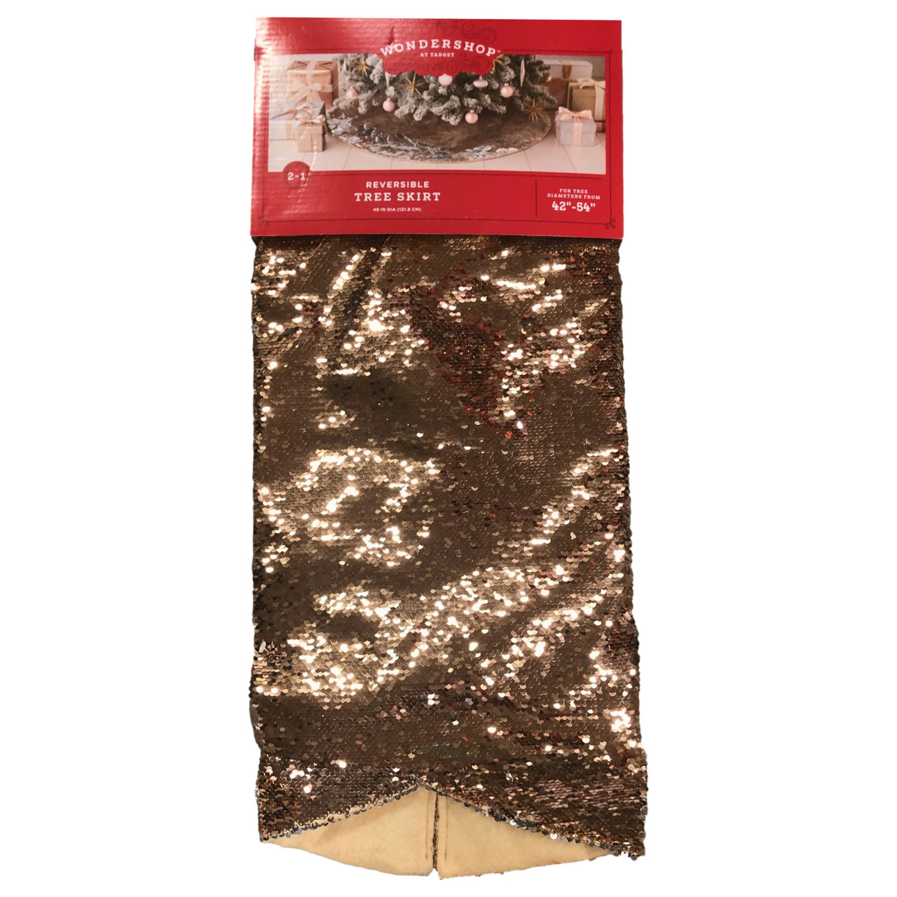 - Reversible Rose Gold & Silver Flip Sequin Christmas Tree Skirt 42-54 in Diameter