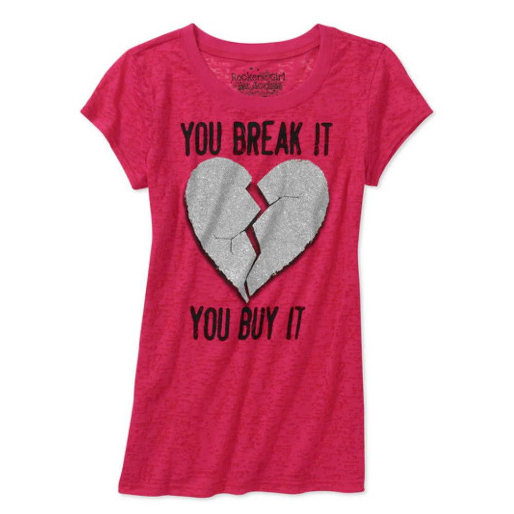 - Rocker Girl Junior Women Pink You Break It You Buy Heart T-Shirt Valentine
