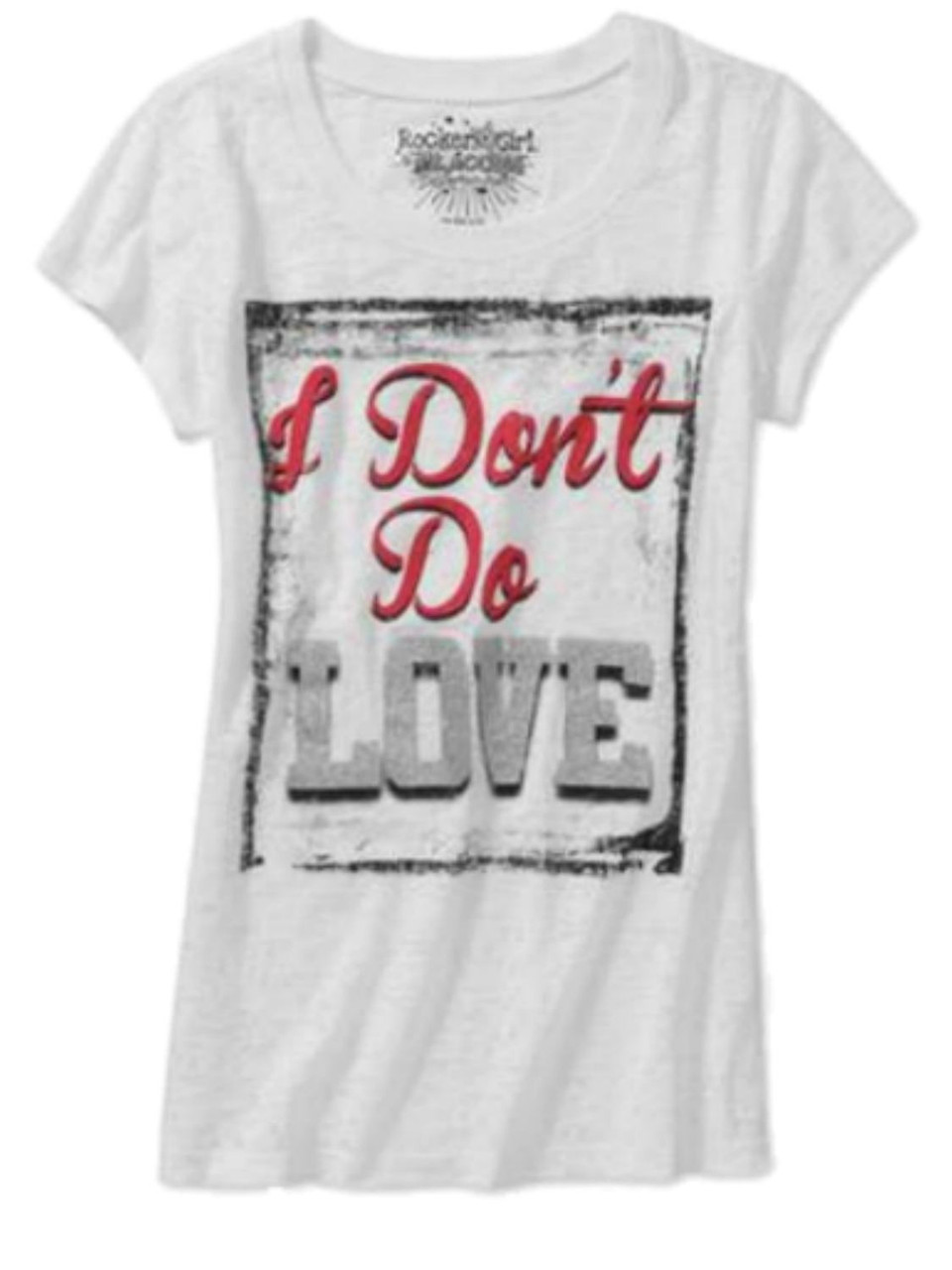 - Rocker Girl Junior Womens White Glitter I don't Do Love T-Shirt Valentines