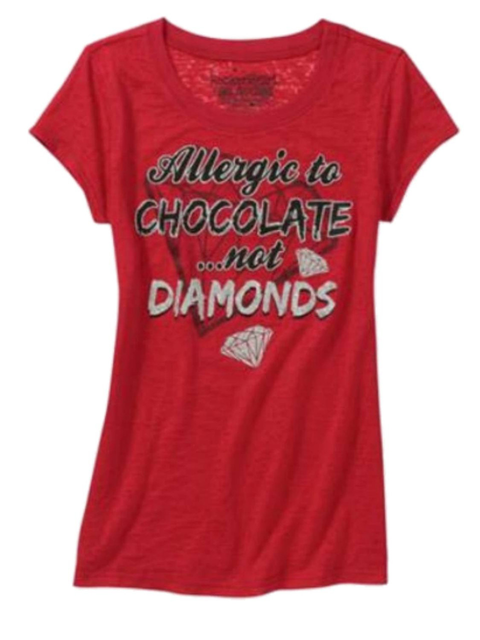 - Rocker Girl Womens Red Allergic to Chocolate Not Diamonds T-Shirt Valentines