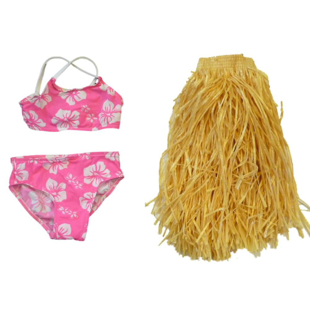- Sand N Sun Toddler Girls 3 Piece Swim Suit Pink Bikini With Grass Hula Skirt