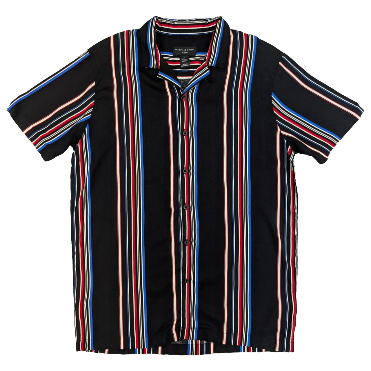 - Shaquille O'Neal XLG Big & Tall Mens Black Multi Stripe Woven Shirt