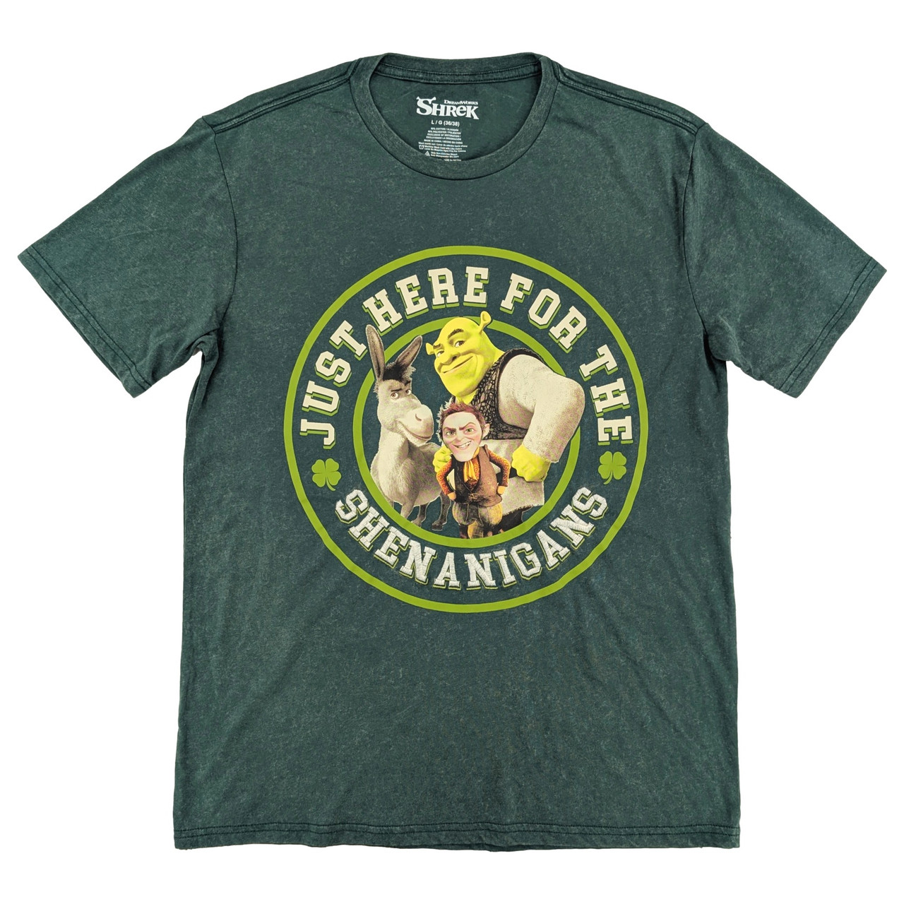 - Shrek Mens Dark Green Wash St. Patricks Day Shenaningans Tee Shirt