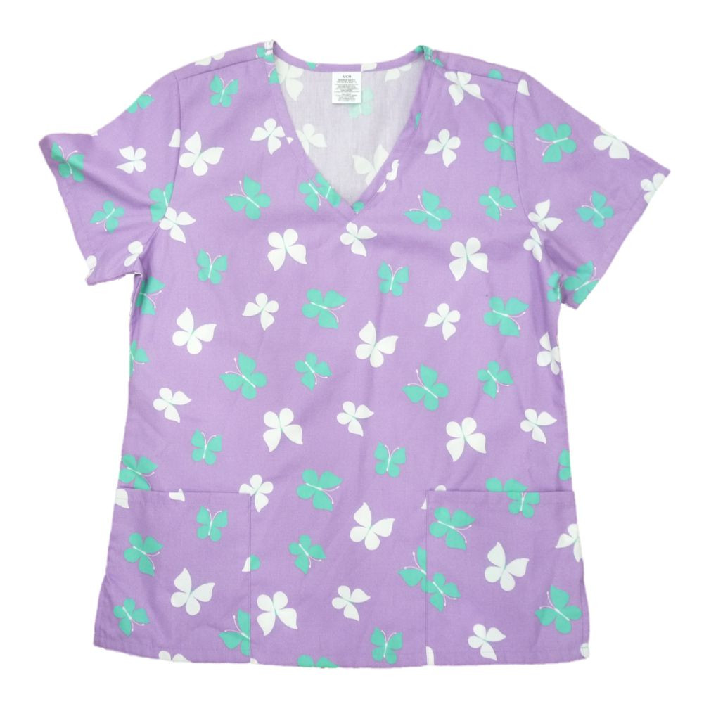 - Simply Basic Womens Lavender Butterfly Medical Smock Nurse Scrubs Shirt Top