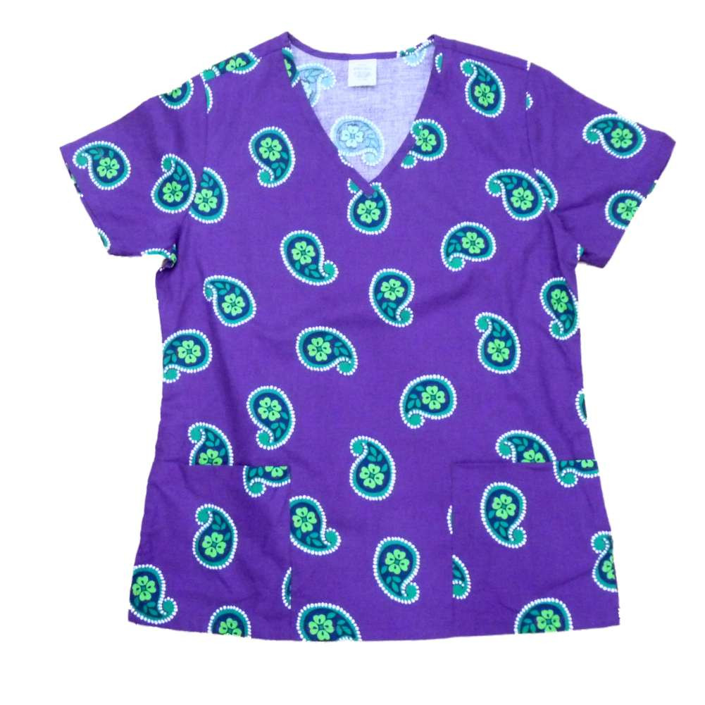 - Simply Basic Womens Purple Paisley Medical Smock Nurse Scrubs Shirt Top