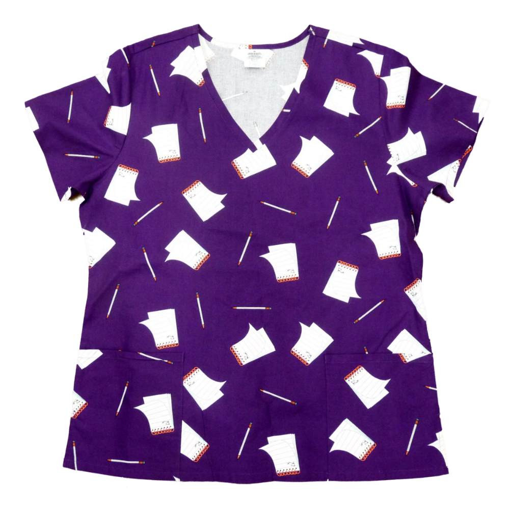 - Simply Basic Womens Purple Pencil Notepad Medical Smock Nurse Scrubs Shirt Top