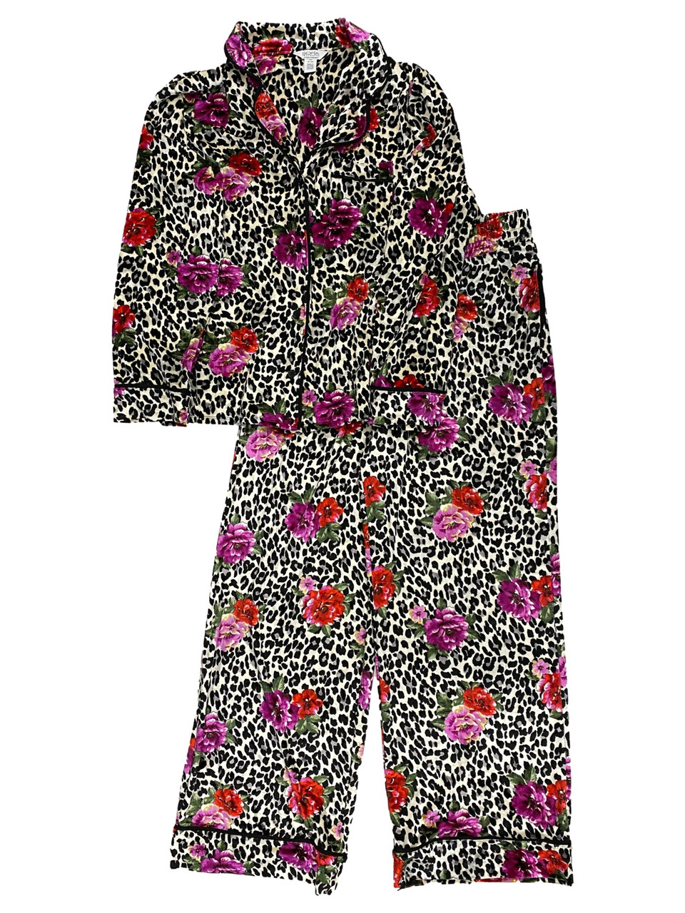 - Sofia Vergara Womens Velvety Leopard Flower Print Pajamas Sleep Set