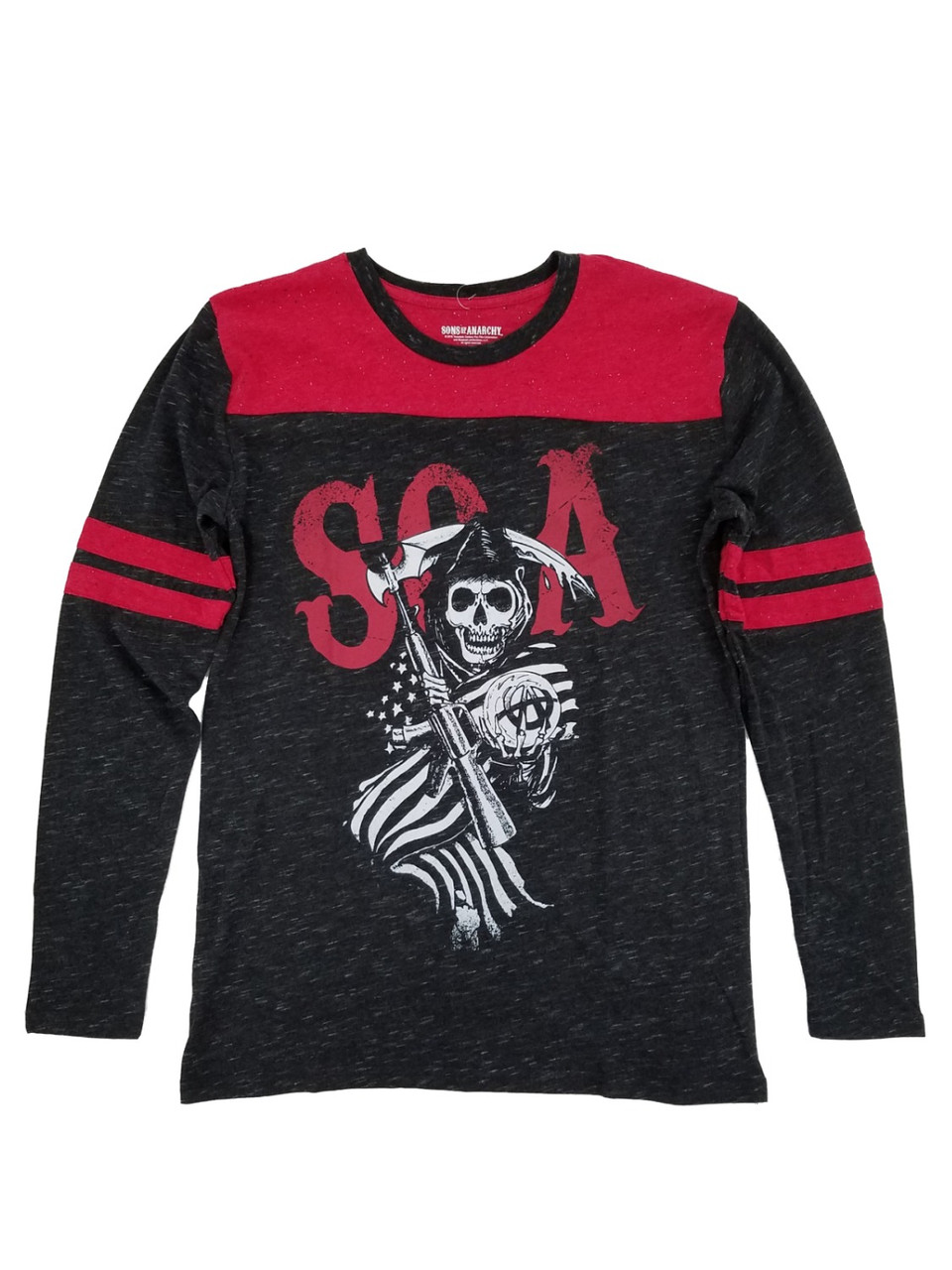 - Sons of Anarchy Mens Red & Black Long Sleeve Graphic T-Shirt