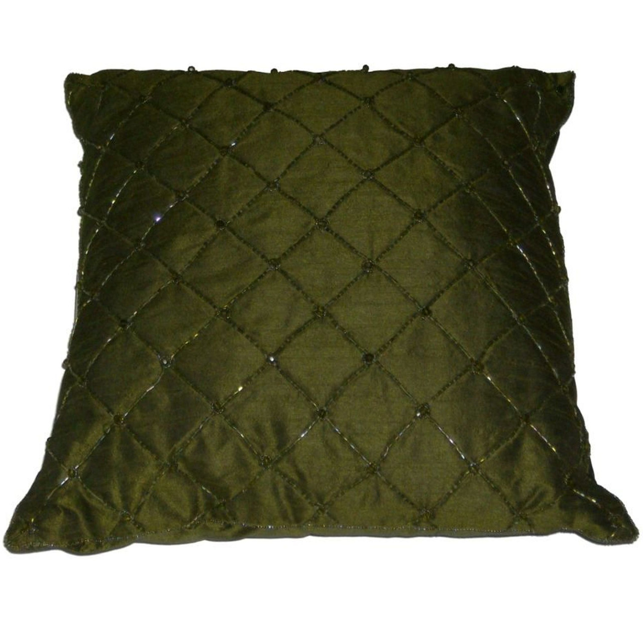 - Spencer Beaded Green Holiday Throw Pillow Lattice Bead Accent Cushion