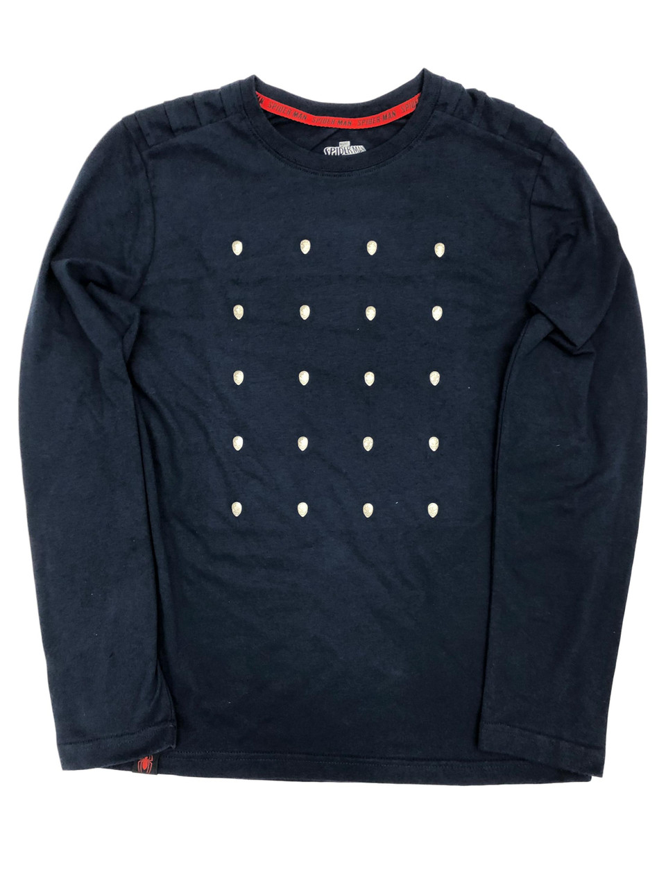 Your little Spiderman fan will love this long sleeved blue t-shirt with silver Spiderman faces!