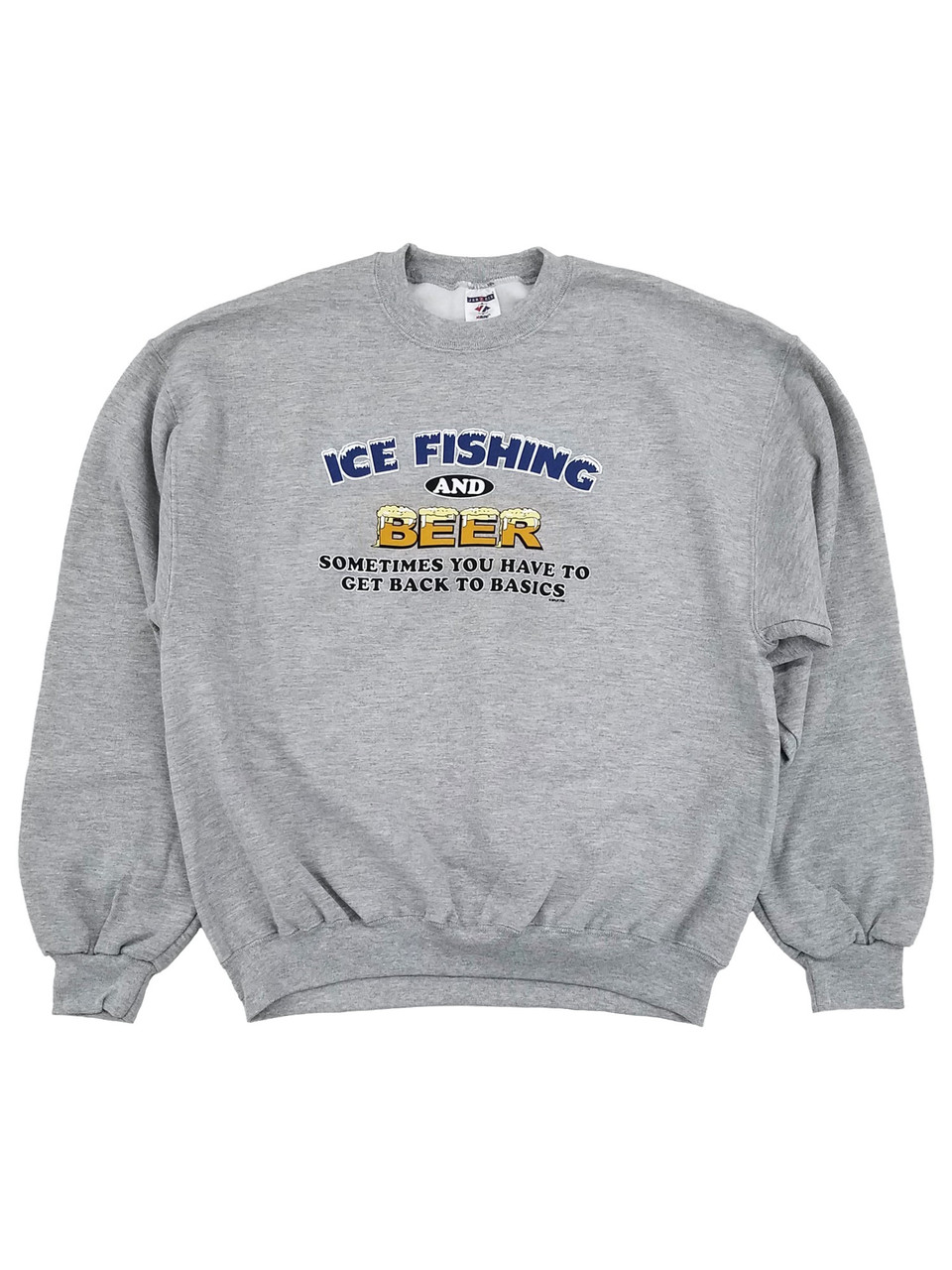 - Split Tees Mens Gray Ice Fishing & Beer Heavyweight Pullover Sweatshirt
