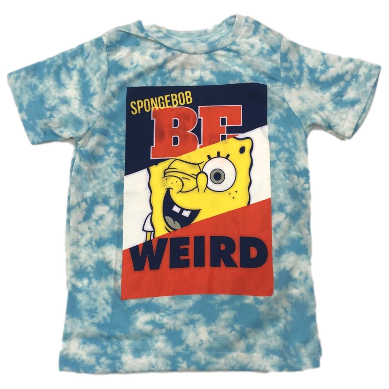 - Spongebob Square Pants Boys Blue Tie Dye Be Weird T-Shirt Tee Shirt