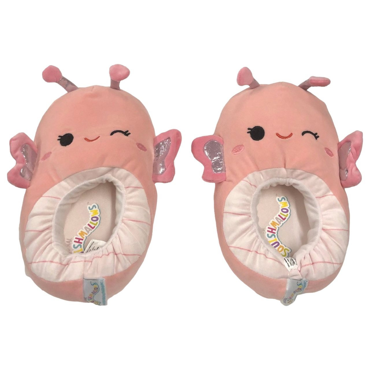 You will love wearing these cozy pink "Maribel the Butterfly" Squishmallow themed slippers around the house!