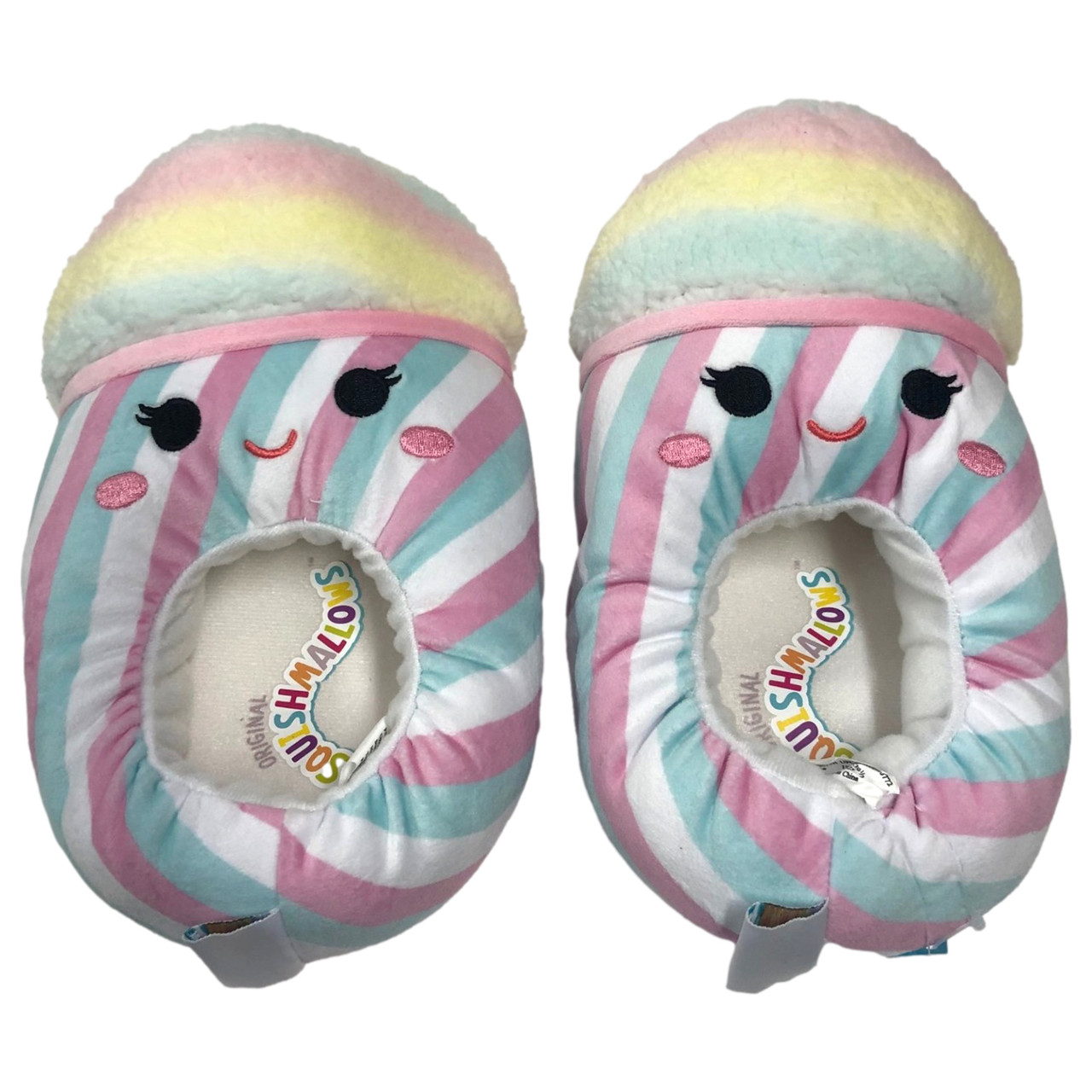 You will love wearing these cozy rainbow colored Bevin the Snowcone Squishmallow themed slippers around the house!