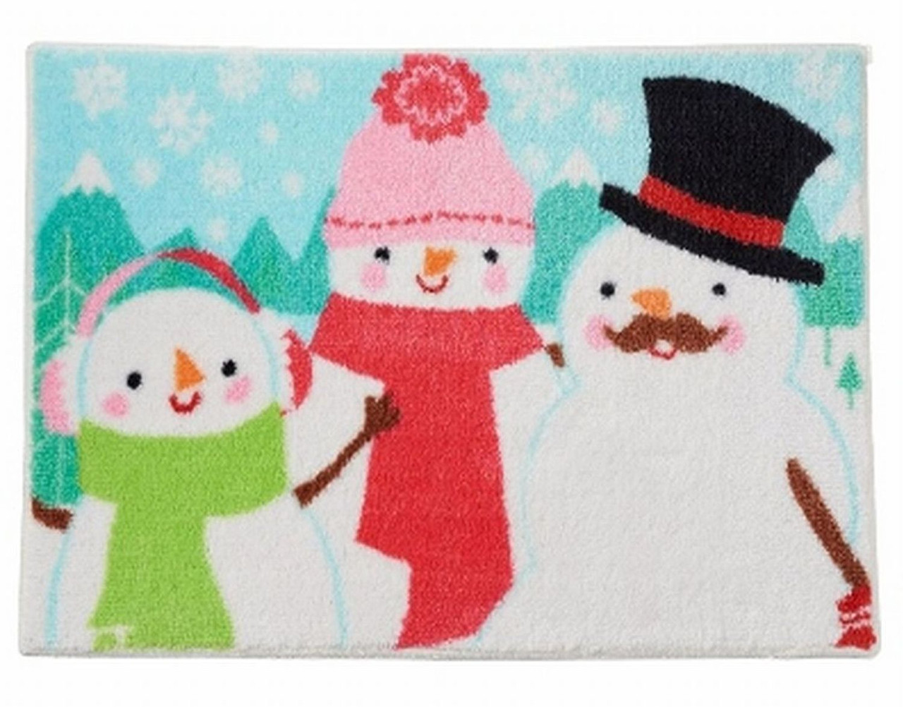 This St Nicholas Square bath rug has a great look. It features a darling snowman family in shades of green, blue, red, pink and white. It will make a great bath mat or accent rug.