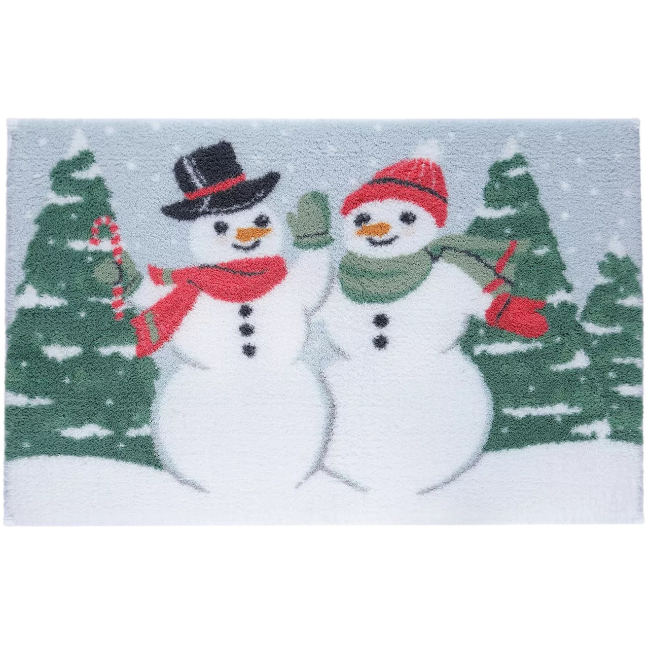 - St Nicholas Square Winter Snowman & Trees Bath Rug, 20x30 Skid Resistant Mat