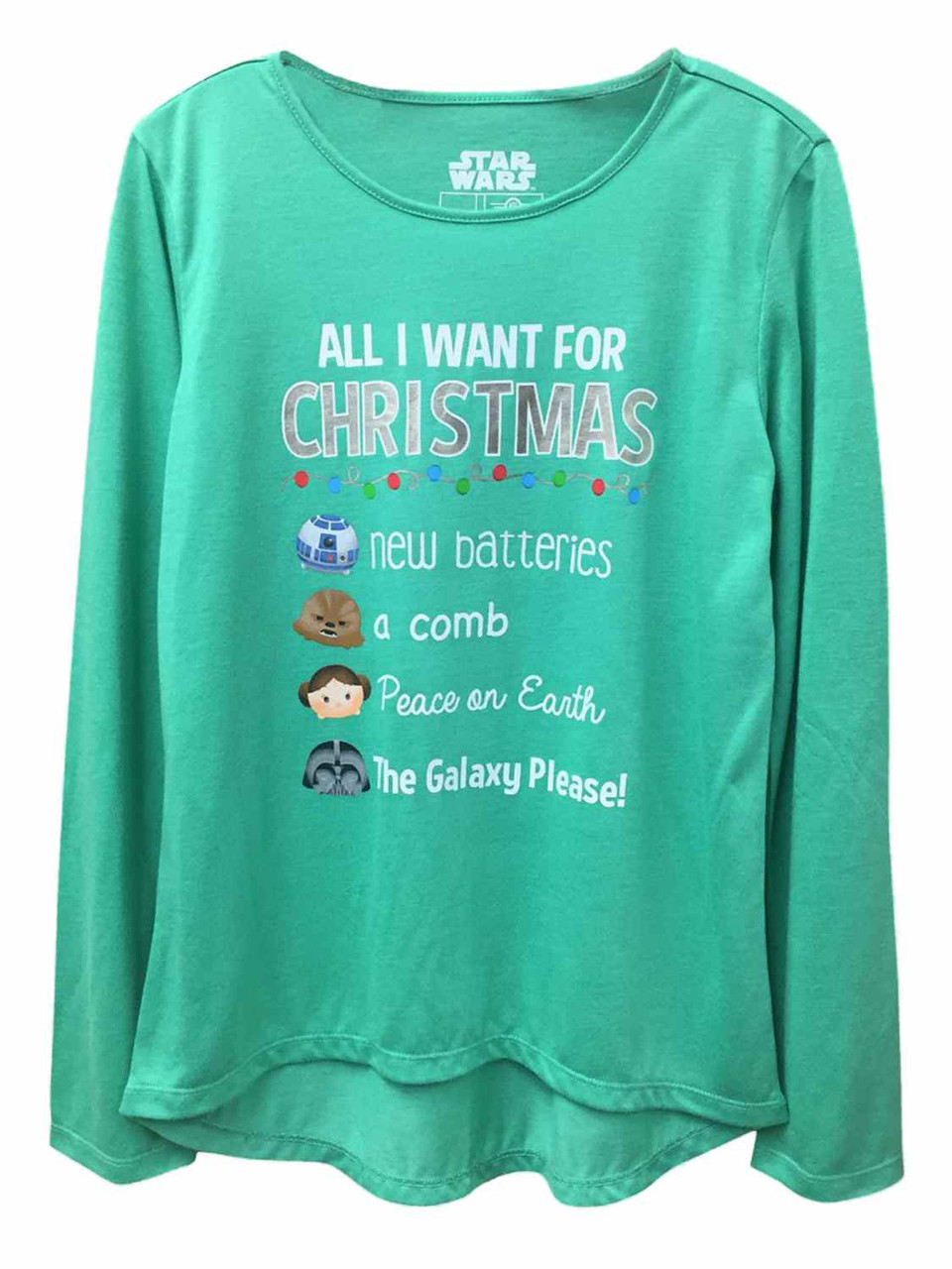 - Star Wars Girls Green All I Want For Christmas Holiday Shirt T-Shirt