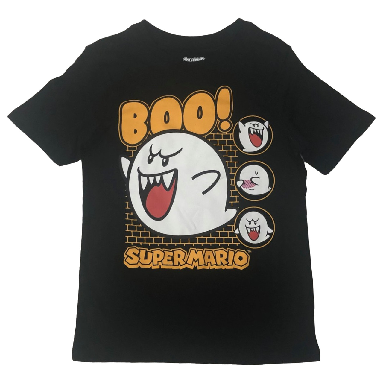 - Super Mario Boys Black & Orange Boo Ghost Halloween T-Shirt Tee Shirt