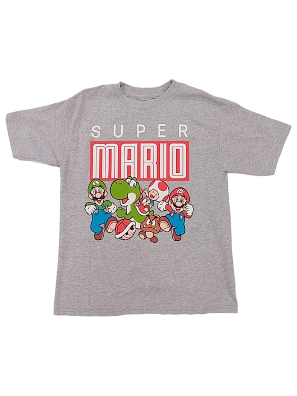 This awesome gray Super Mario Toad, Yoshi, Goomba, Luigi & Mario t-shirt is sure to be a favorite!