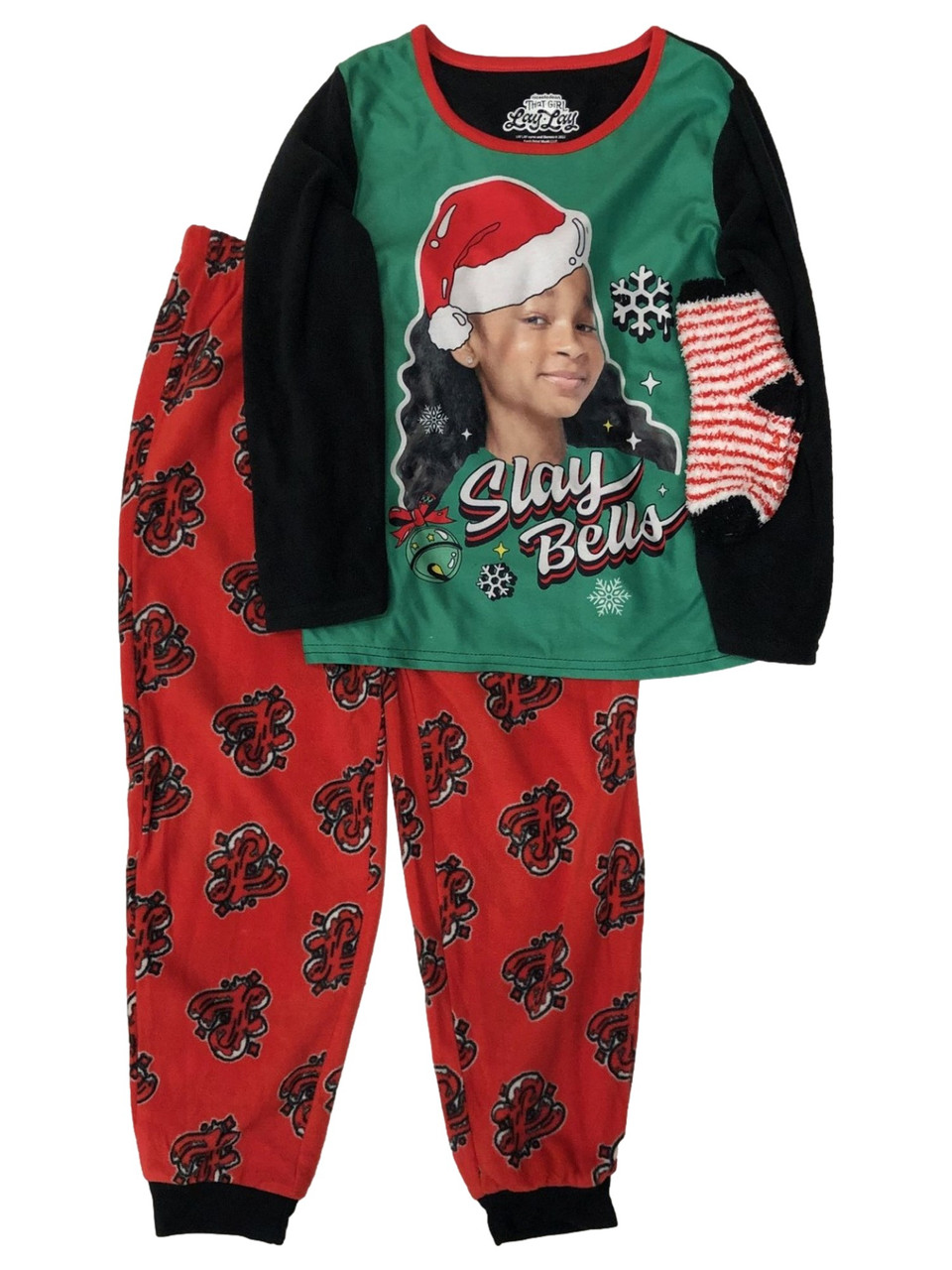 - That Girl Lay Lay Girls Green & Red Fleece Christmas Sleep Set Pajamas