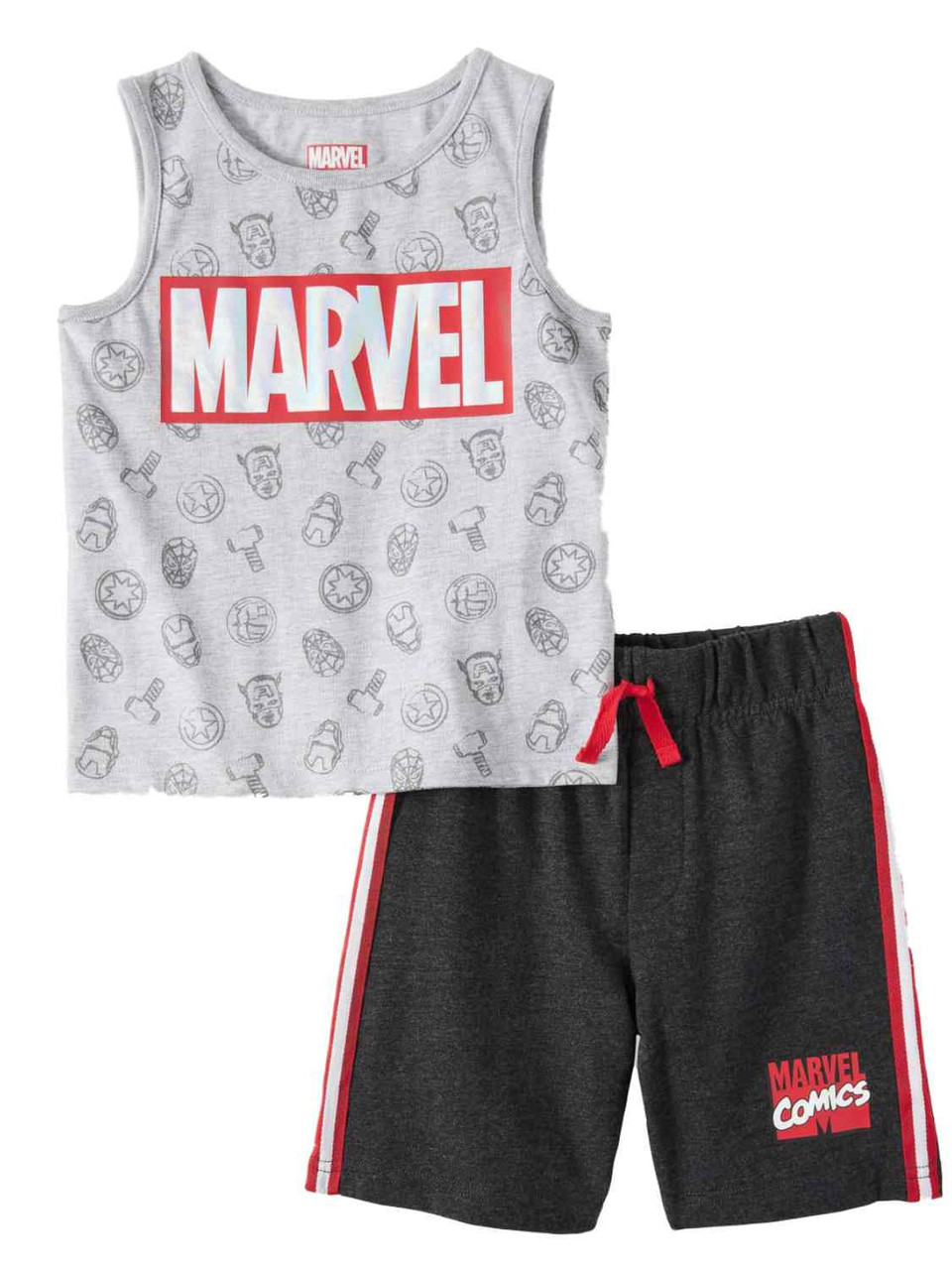 - The Avengers Toddler Boys Outfit Gray Tank Top Shirt & Black Shorts Set