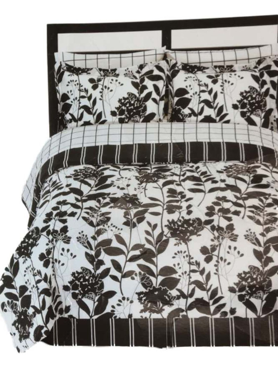 - The Big One Black White Meadow Twin 6 Piece Bed in Bag Set Comforter Sheets