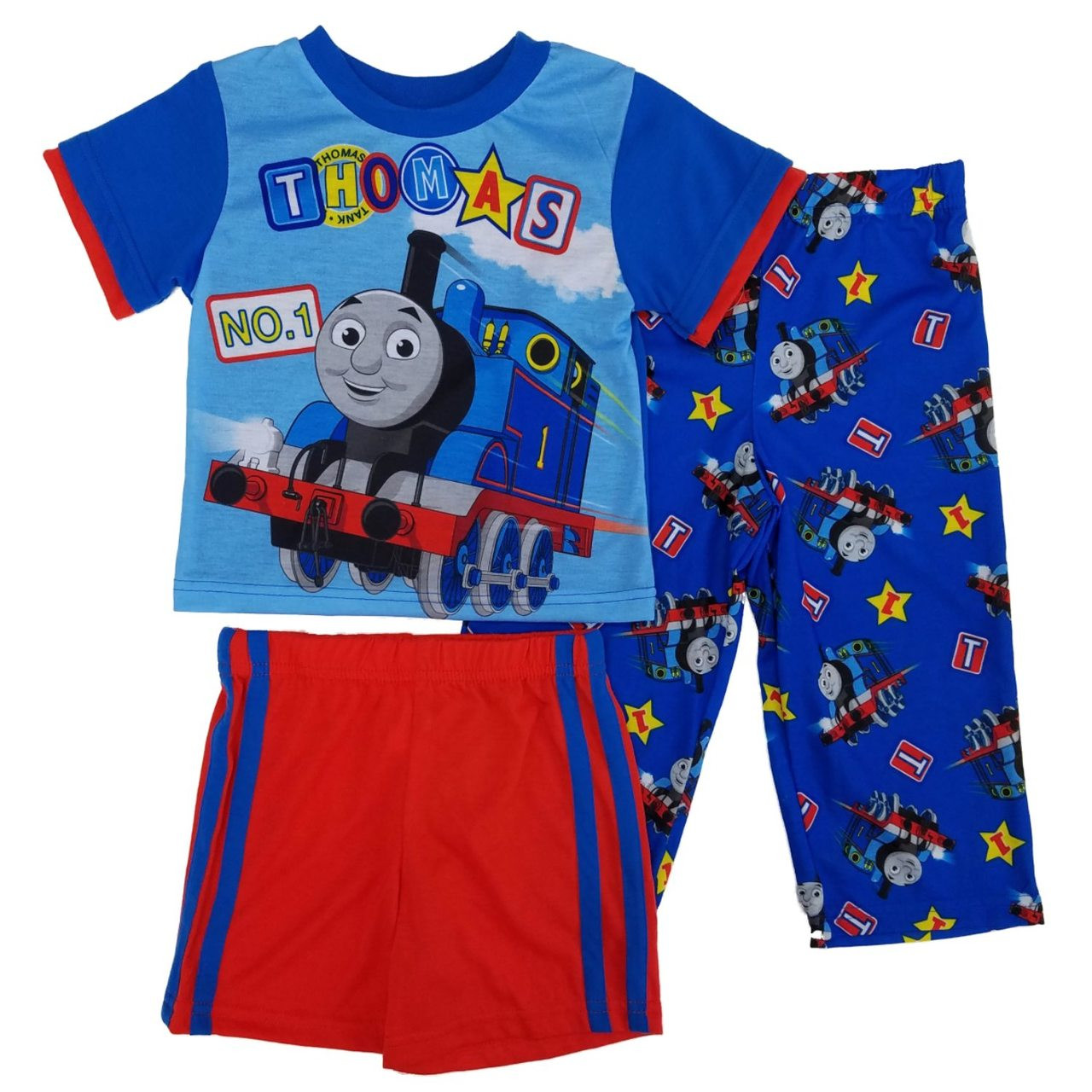 This 3-piece Thomas & Friends pajama set includes a t-shirt, shorts and pants.