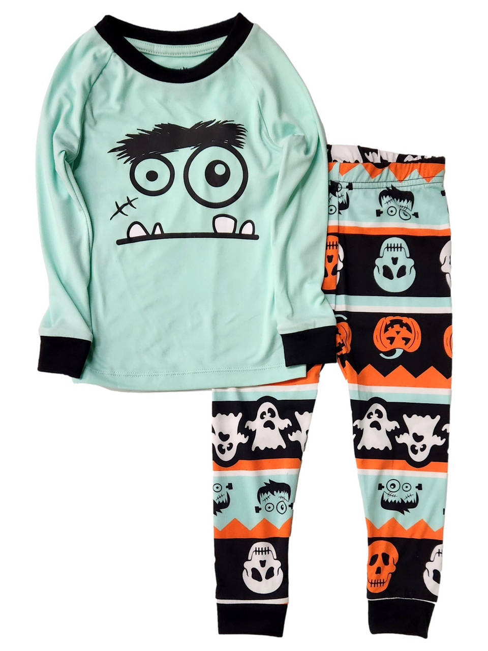 - Toddler Boy & Girl Black & Green Halloween Monster Pajamas Set