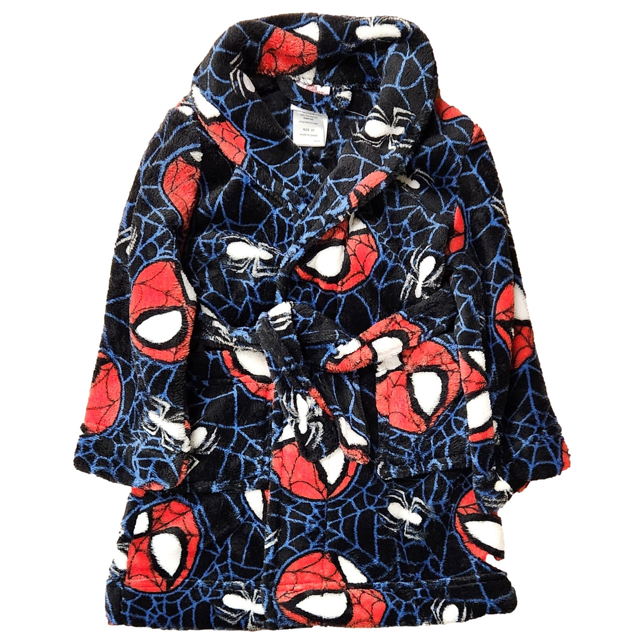 - Toddler Boys Black Spiderman Plush Fleece Bathrobe Bath Robe House Coat 2T